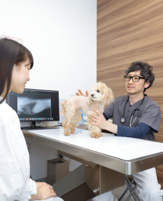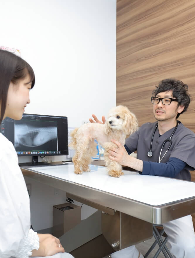 大切な家族の一員である動物たちと飼い主様に少しでも長い時間を過ごして欲しいから。私たちは、診察を行って薬を処方するだけではなく、飼い主様と共に悩みながら治療方針を見出すことにより、最善の診療を行います。